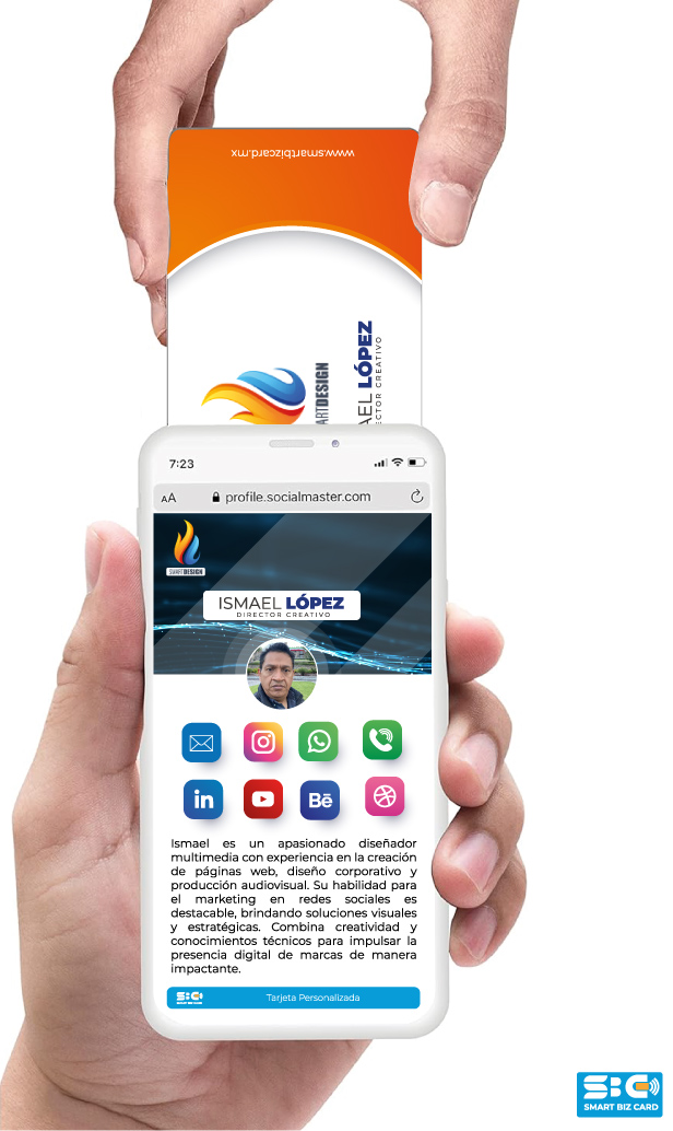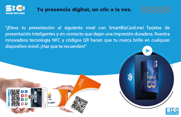 “¡Eleva tu presentación al siguiente nivel con SmartBizCard.mx! Tarjetas de presentación inteligentes y sin contacto que dejan una impresión duradera. Nuestra innovadora tecnología NFC y códigos QR hacen que tu marca brille en cualquier dispositivo móvil.